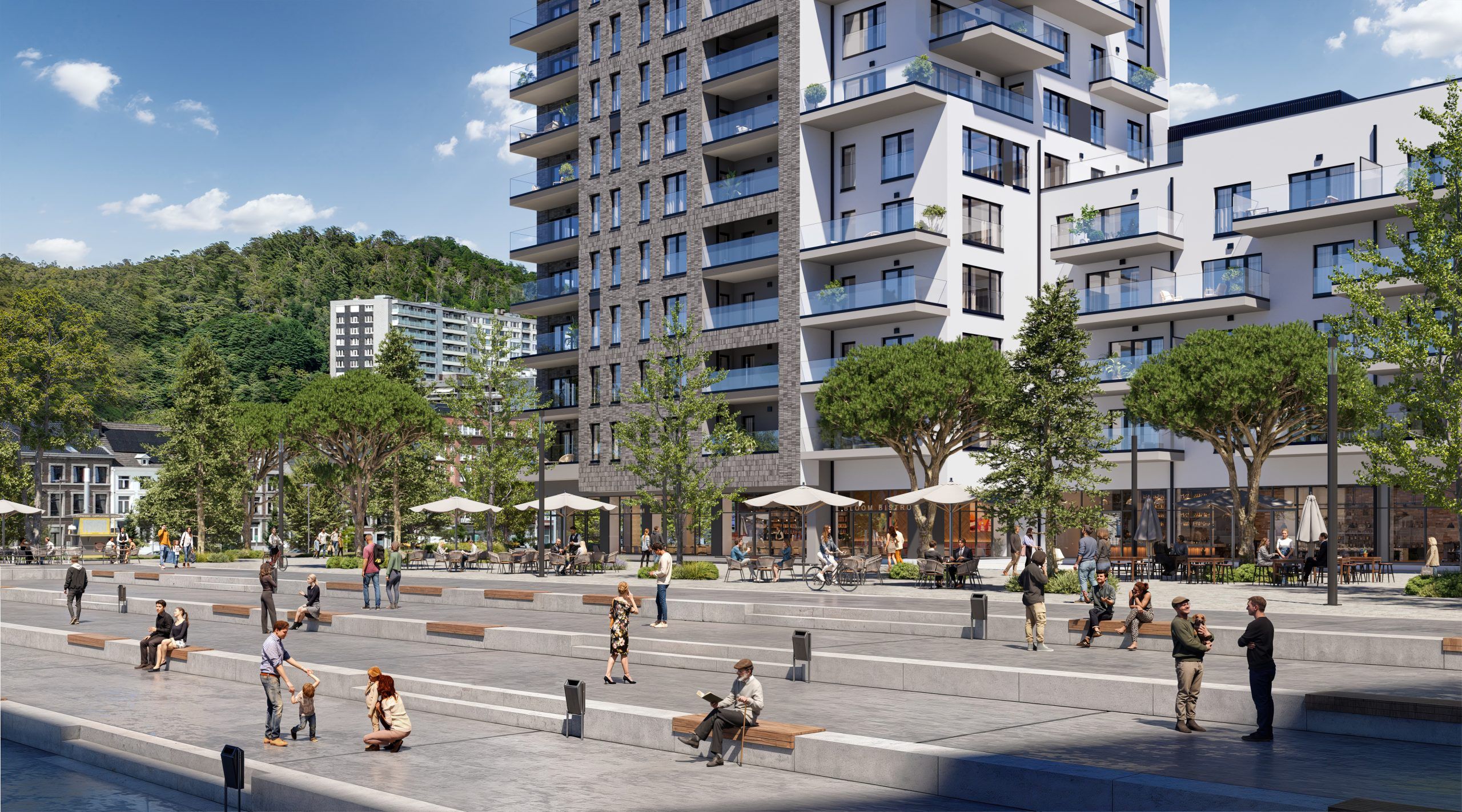 Un parking souterrain est disponible et facilement accessible par ascenseur, mais une attention particulière est portée à la mobilité douce, avec l’offre de vastes zones de stockage pour vélos, au rez-de-chaussée de l’immeuble, la proximité immédiate de la station de tram ‘Place Coronmeuse’, ou la mise-à-disposition de voitures partagées.
