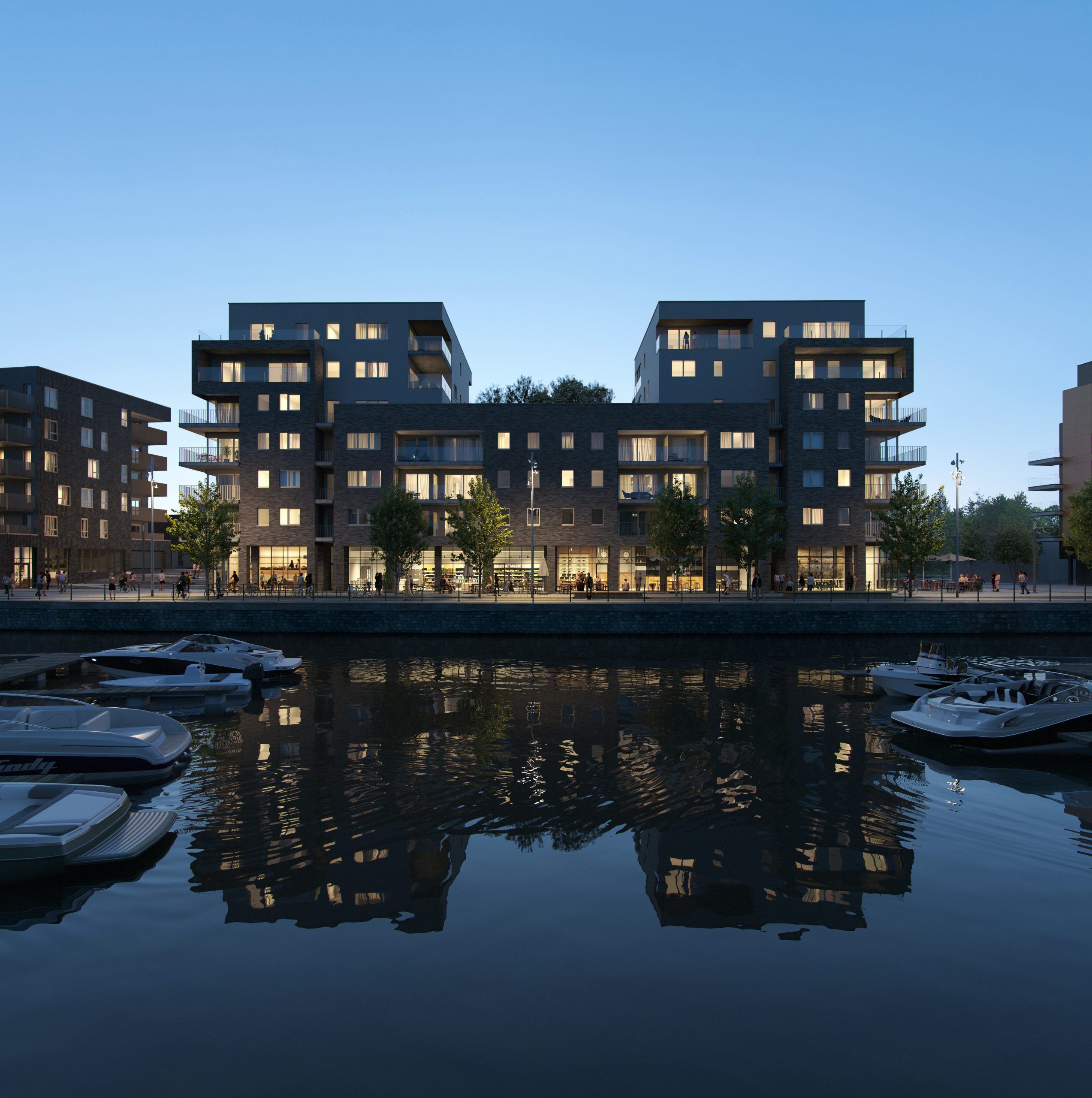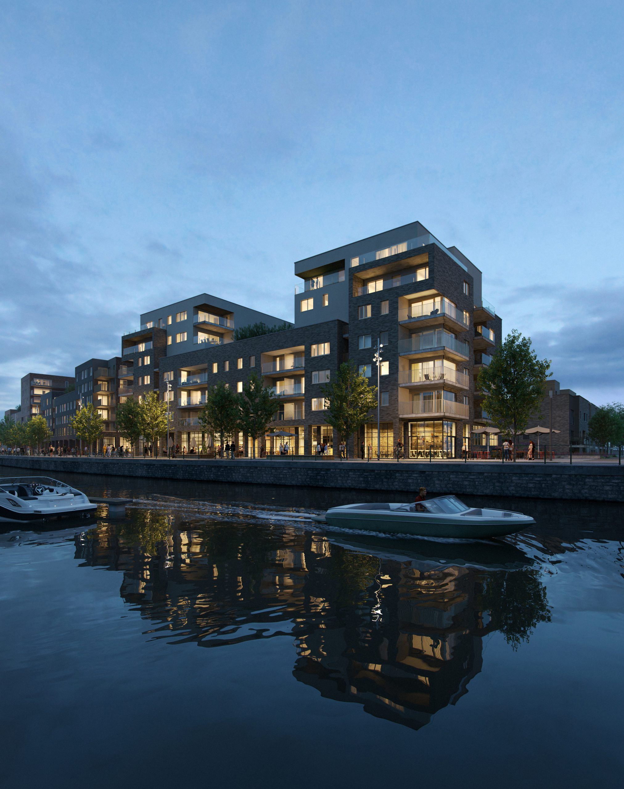 D’une chambre à quatre chambres, les appartements du Quai 3 ont pour voisins directs le port de plaisance en façade avant et un jardin partagé sur l’arrière. En plus, chacun d’entre eux dispose d’une terrasse confortable. Les rez-de-chaussée des immeubles proposent de grands espaces de rangement pour vélos. L’acquisition d’une cave privative en sous-sol est possible. Un parking partagé est directement accessible par les ascenseurs. En plus d’une offre très riche de transports en commun, des voitures partagées sont également à disposition.
