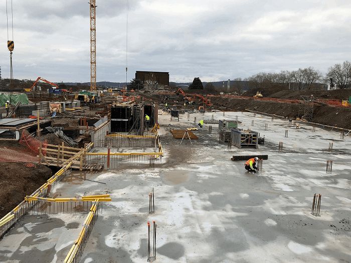 Bétonnage des fondations du parking sous les immeubles Quai 1 & Quai 2